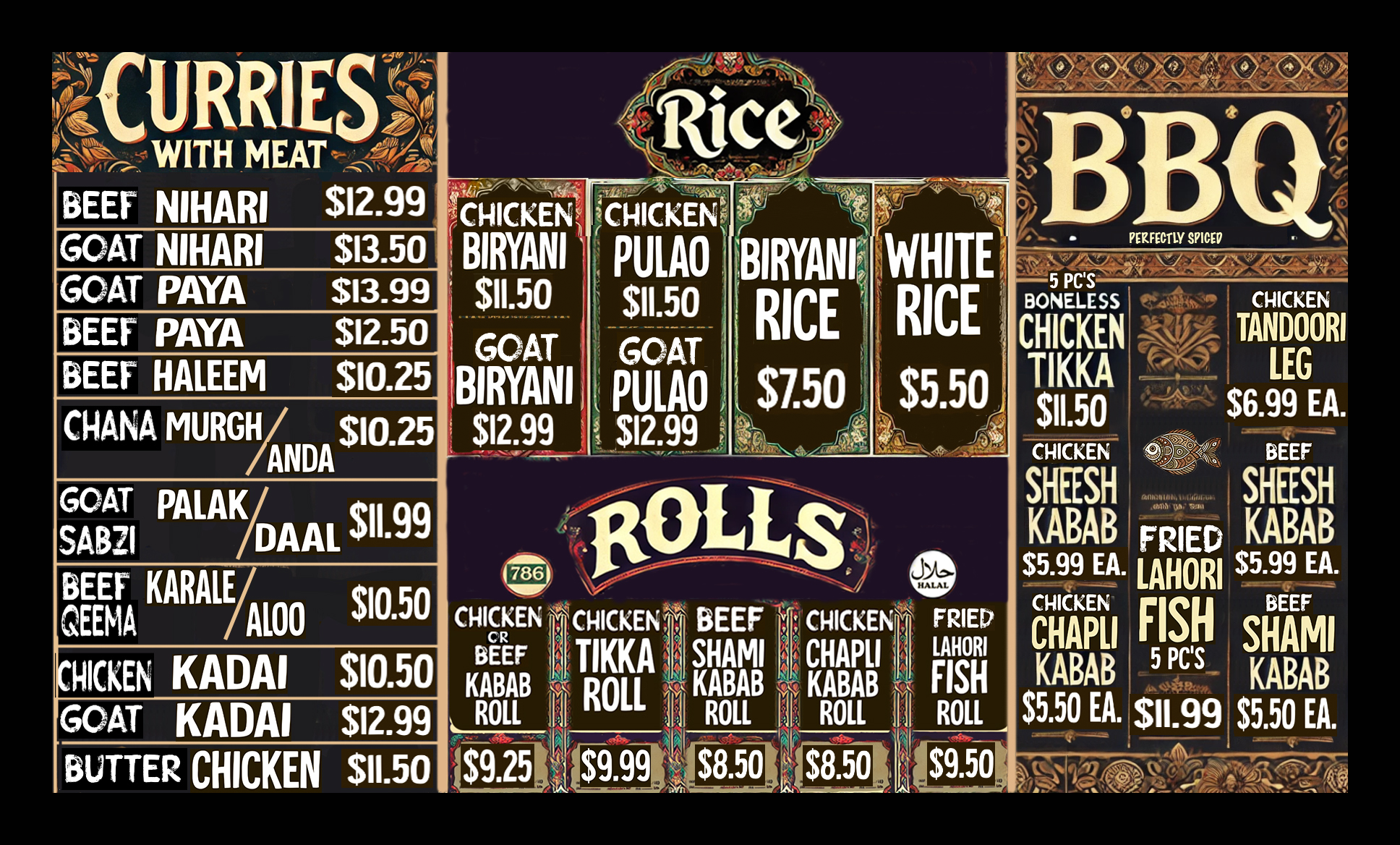 Pakistan’s National Dish, choose between tender goat or beef simmered in a rich, aromatic gravy.